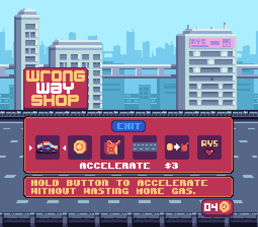 Con las monedas conseguidas se pueden comprar mejoras del coche como aumento de velocidad al cambiar de carril y mejoras del juego como el aumentar el número de monedas y barriles de gasolina que aparecen. Así que contra más juegues más lejos llegarás, lo que resulta muy adictivo y rejugable.